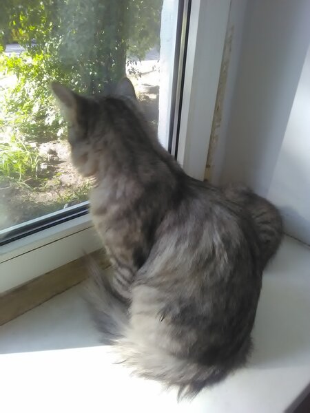 Летним вечером на клумбе своего дома я увидела кошечку, явно породистую, с лисьим хвостом и янтарными глазами. Она была очень худенькая, лишь длинная шерсть придавала телу какой-то объем.
