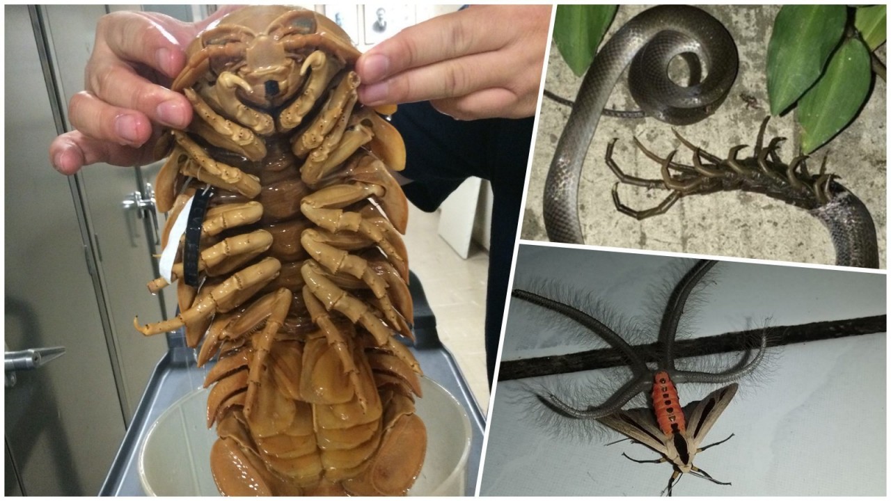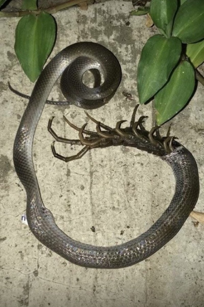 Змея проглотила сколопендру, но та не спешила сдаваться