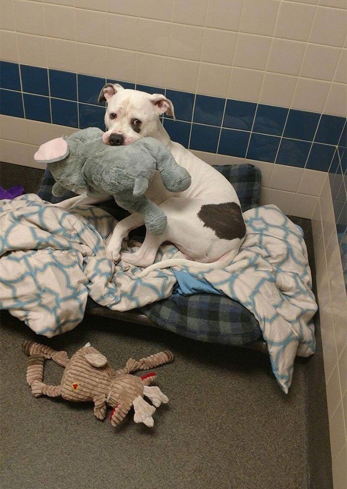 Любовь Смоки к плюшевому слону была так сильна, что сотрудники приюта повесили на его вольер табличку с информацией о том, что будущий владелец собаки должен будет забрать не только пса, но и его игрушку.