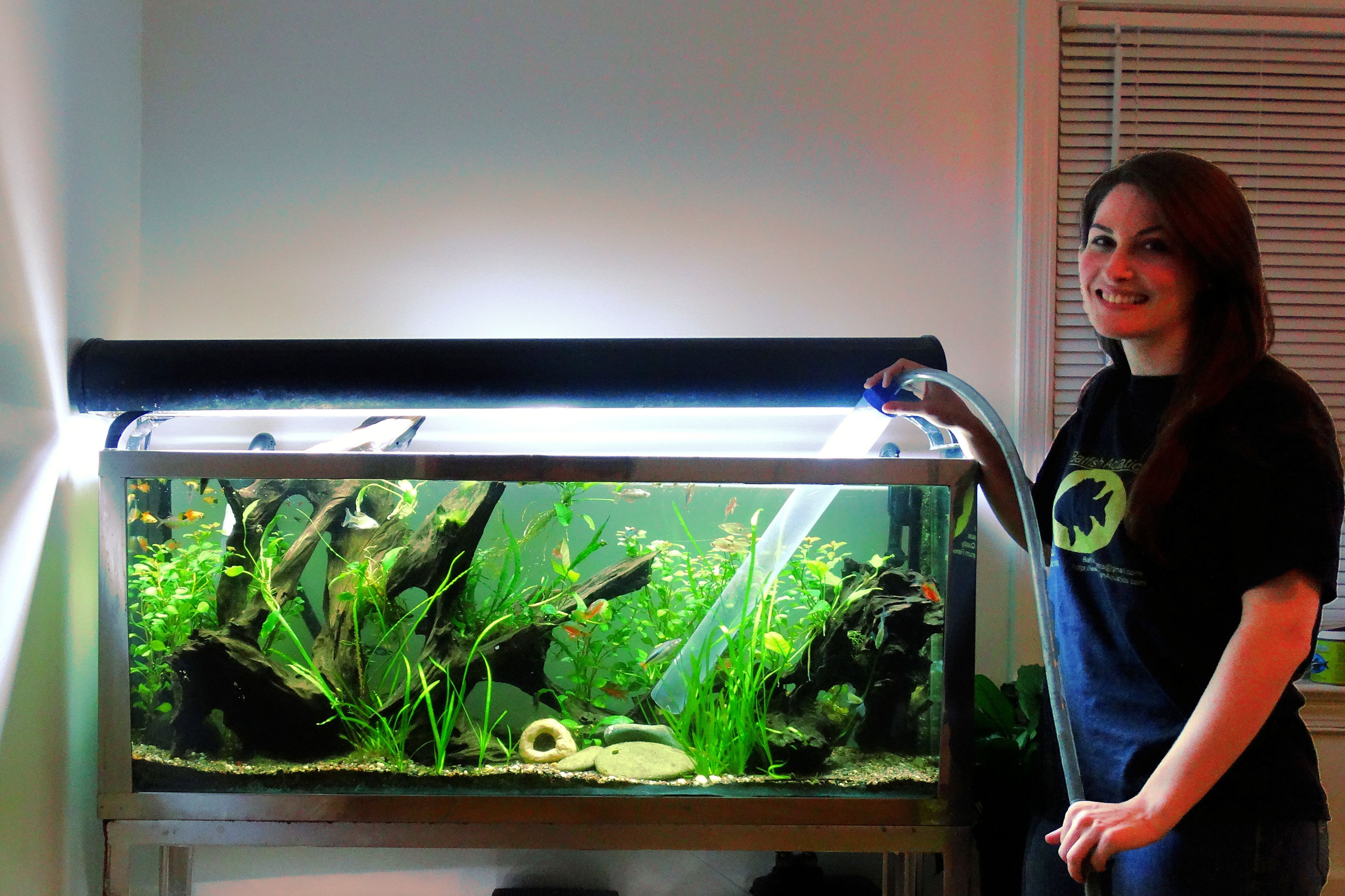 Сифонный инструмент необходим для вакуумирования гравия и подмены воды. Есть простые типы, которые используют гравитацию для сифона, и более сложные модели, которые используют давление воды из вашего крана.Если вы можете себе это позволить, купите модели с краном, так как с их помощью намного проще удалить воду, а затем заменить ее. Ежемесячные подмены воды значительно упрощаются при использовании гравийных пылесосов. Они очищают дно резервуара от отходов, удаляя воду для частичной подмены воды. Не забудьте добавить дехлоринатор, когда снова добавляете водопроводную воду для наполнения аквариума.