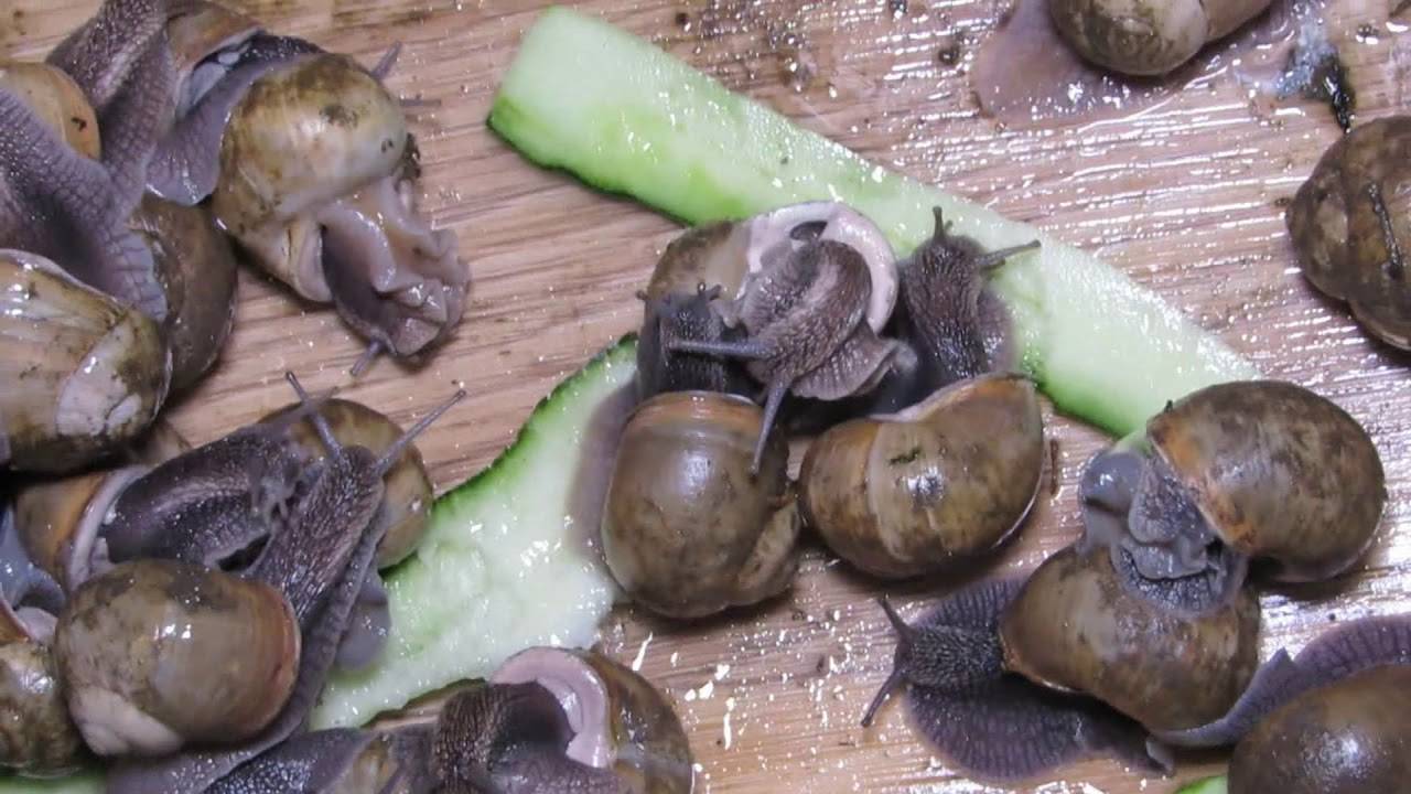 Так же они с охотой полакомятся и ошпаренными кусочками огурца, капусты, кабачка. Улитки не питаются растениями и мясной пищей.