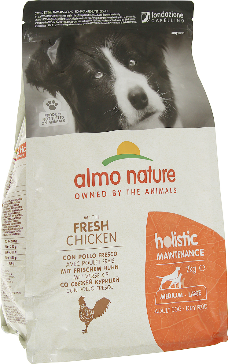 Корма для холистических собак используют только один источник мяса или рыбы и, предпочтительно, рыбу, выловленную в море, или животных на свободном выгуле, такие как баранина. Они не содержат красителей, добавок или побочных продуктов и должны содержать овощи и фрукты.