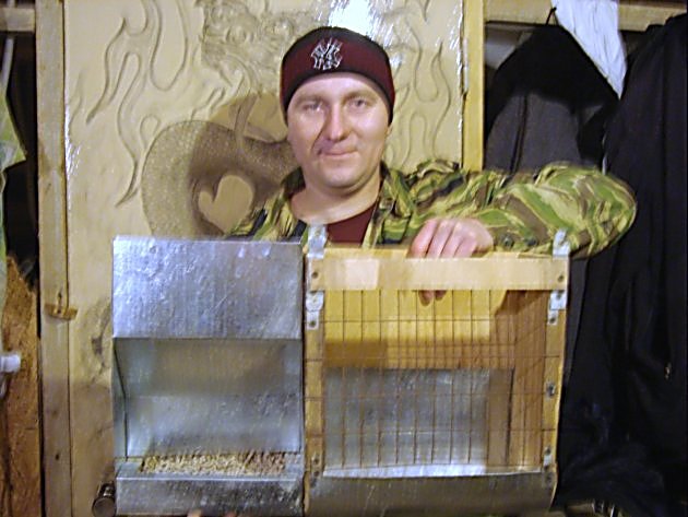 Фермеры также отдают предпочтение кормушкам Н. И. Золотухина. Особенность изобретения состоит в том, что она может опрокидываться благодаря шарнирному принципу. Чтобы удалить остатки корма, сена и почистить кормушку золотухина, достаточно просто опрокинуть конструкцию.