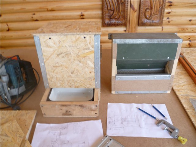 Создатель многоярусных клеток без поддонов предлагает вашему вниманию кормовые отсеки, сделанные своими руками из оцинкованного железа и деревянных брусков. Итак, для создания кормушки золотухина вам пригодятся следующие материалы:
