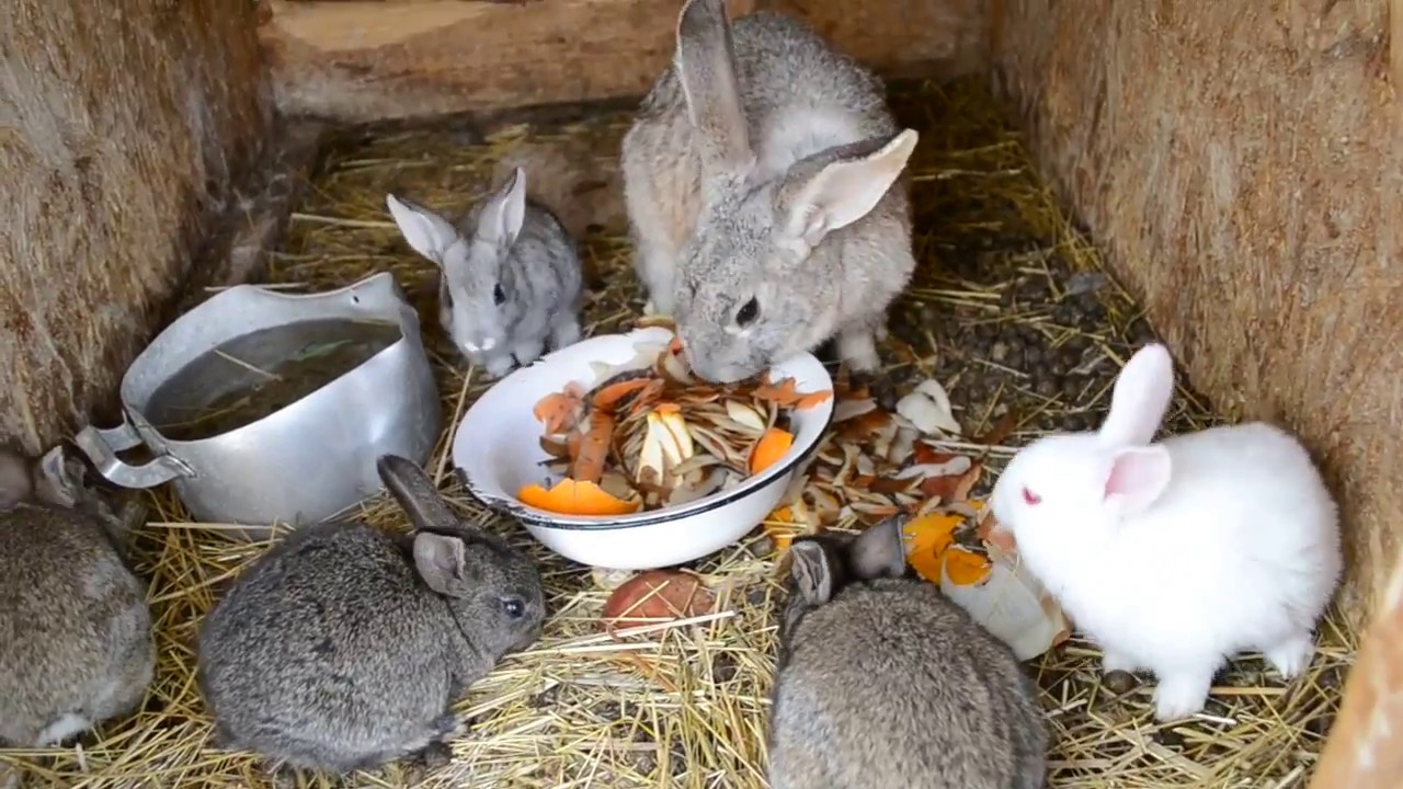 В представленном видео заводчик рассказывает, чем кормит своих кроликов:
