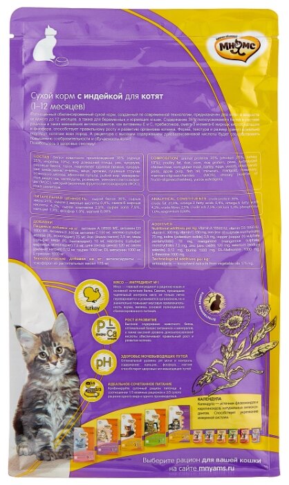 Растущему организму котенка требуется больше калорий, чем взрослому животному. Поэтому корм для котят примерно на 20-30 % калорийнее. Если кормить такой едой уже выросшего, сформировавшегося кота, это грозит ожирением и проблемами с пищеварением; - содержание белков и жиров. В процессе роста у котенка формируется скелет, сердечно-сосудистая и нервная система, что требует большого содержания животных белков и жиров. Для этого детский корм производители добавляют больше натуральных мясных ингредиентов. При нехватке белков малыш будет вялый и неактивный. А при сильном дефиците возможны проблемы с сердцем и центральной нервной системой, которые могут проявиться уже во взрослом возрасте. Повышенная концентрация белков и жиров для взрослых кошек не опасна, но только при условии, что животное абсолютно здорово;