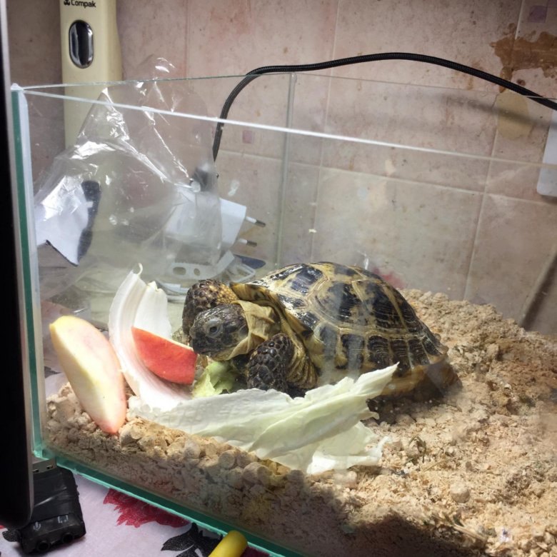 Важно следить за регулярным питанием. Взрослая черепаха средних габаритов должна съедать каждый день как минимум полкочана салата или не меньшее количество иной пищи. Если ваша черепаха почти ничего не ест — на это непременно стоит обратить внимание: вполне вероятно, что ваш питомец заболел. Желательно обзавестись весами и периодически взвешивать животное, отмечая колебания его веса, чтобы своевременно замечать возникновение проблем со здоровьем вашего питомца.
