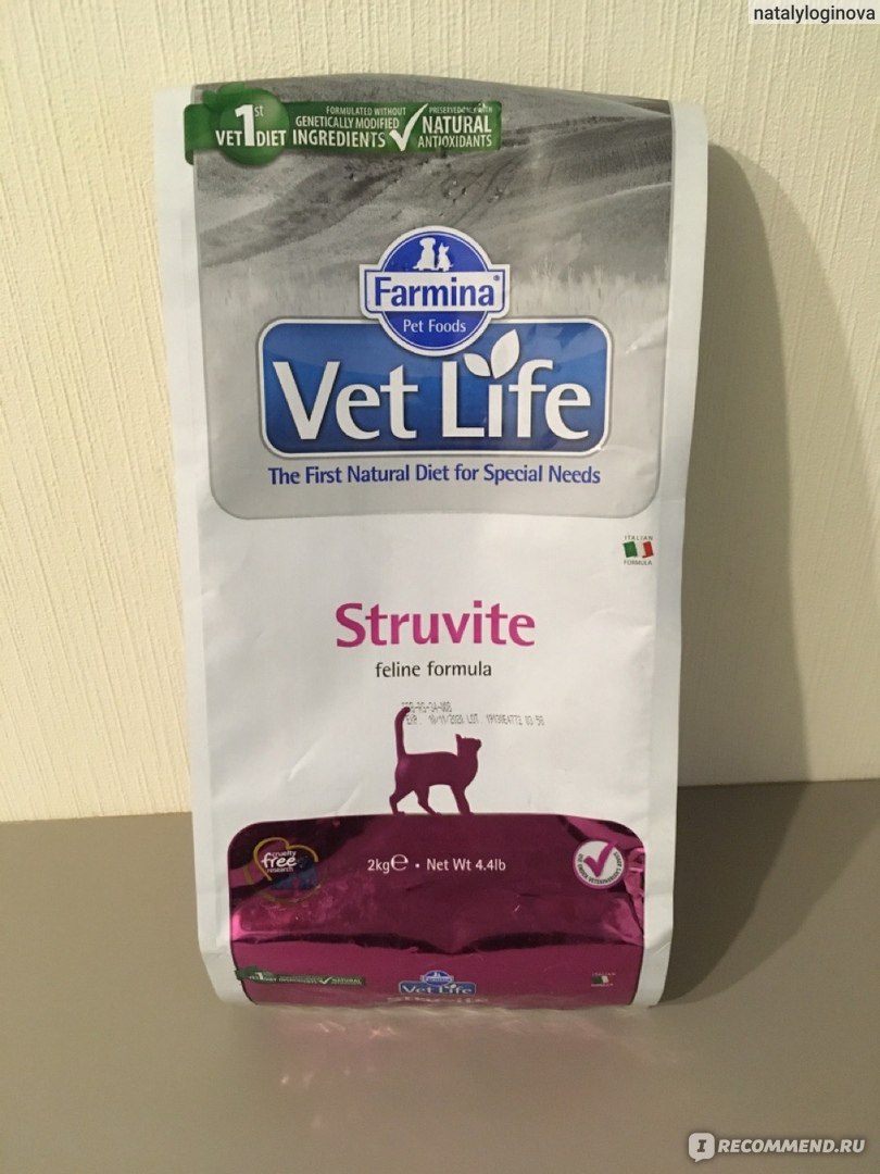 Описание Farmina Vet Life Struvite: диетическое питание для кошек, разработанное для растворения струвитных уролитов. Растворение уролитов струвитного типа. Подкисление мочи. Низкое содержание белка, кальция, фосфора и магния создает неблагоприятные условия для агрегации и кристаллизации осадка в моче.