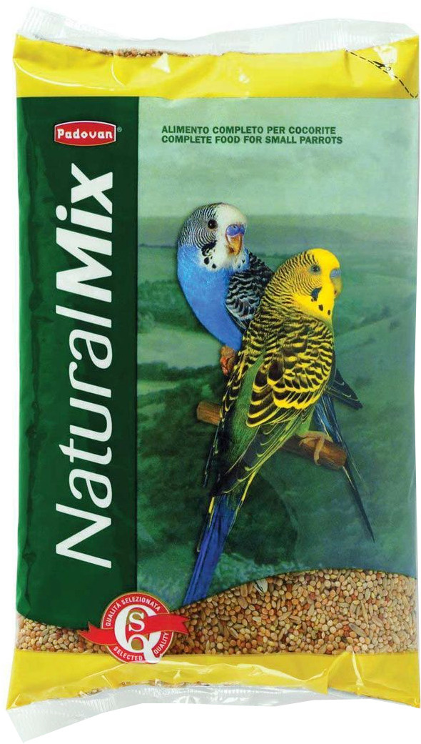В линейке Grandmix итальянской фирмы Padovan есть корма для разных видов домашних птиц, в том числе для волнистых попугайчиков. Основой для этой смеси является просо — его здесь целых 68%. Дополняют его канареечное семя, лущёный овёс и вяленые фрукты: груша, яблоко, абрикос. Источником минеральных веществ служат измельчённые ракушки, которые в случае с другими кормами приходится давать отдельно. Сомнения у потребителя могут вызвать только кусочки витаминизированного печенья, содержащие краситель. Хотя птицы чаще всего игнорируют их, многие хозяева рекомендуют на всякий случай выбирать эту добавку из корма и снабжать птичку витаминами посредством свежих овощей и фруктов.