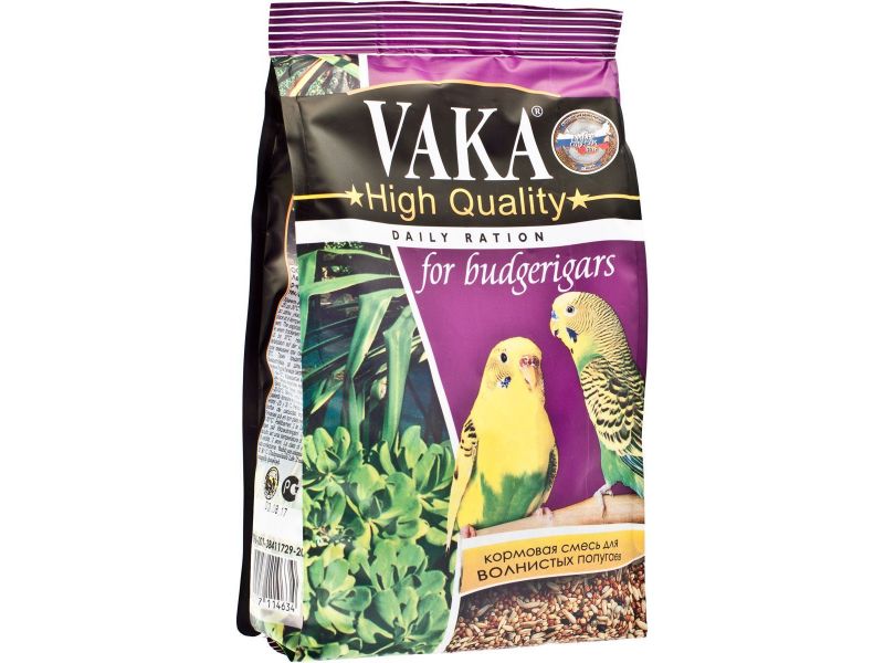 Основной этого корма служат злаки и семена, значительную часть которых составляют обогащённые витаминами просо и подсолнечник. Включённые в состав орешки являются для попугая источником белка, основных макро- и микроэлементов, но в то же время их количество не превышает нормы.