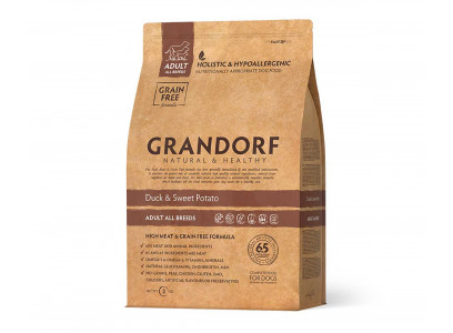 Корм для собак мелких пород GRANDORF гипоаллергенен и относится к классу холистиков (производство Бельгии и Италии). Они содержат элементы животного происхождения (а именно натуральные продукты), которые очень ценны для правильного развития собаки.