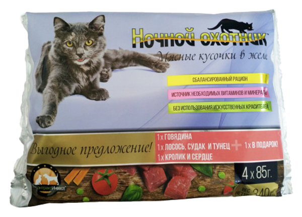 Ночной Охотник — Консервы для Кошек в Желе — Мясное Ассорти