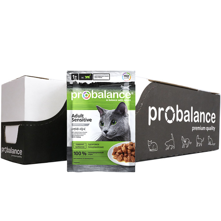 Корм консервированный Probalance Sensitive для взрослых кошек с чувствительным пищеварением, 85 г х 50 шт.