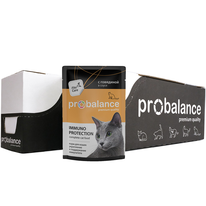 Консервированный корм для кошек Probalance Immuno Protection, защита иммунитета, набор из 2-х видов, с говядиной и кроликом, 85 г х 50 шт.