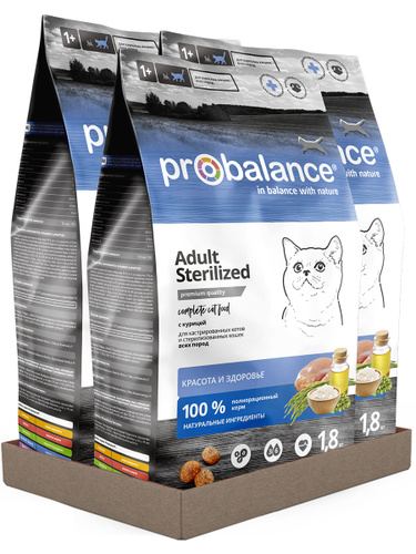Корм сухой Probalance Sterilized для стерилизованных кошек и кастрированных котов, с курицей, 1,8 кг