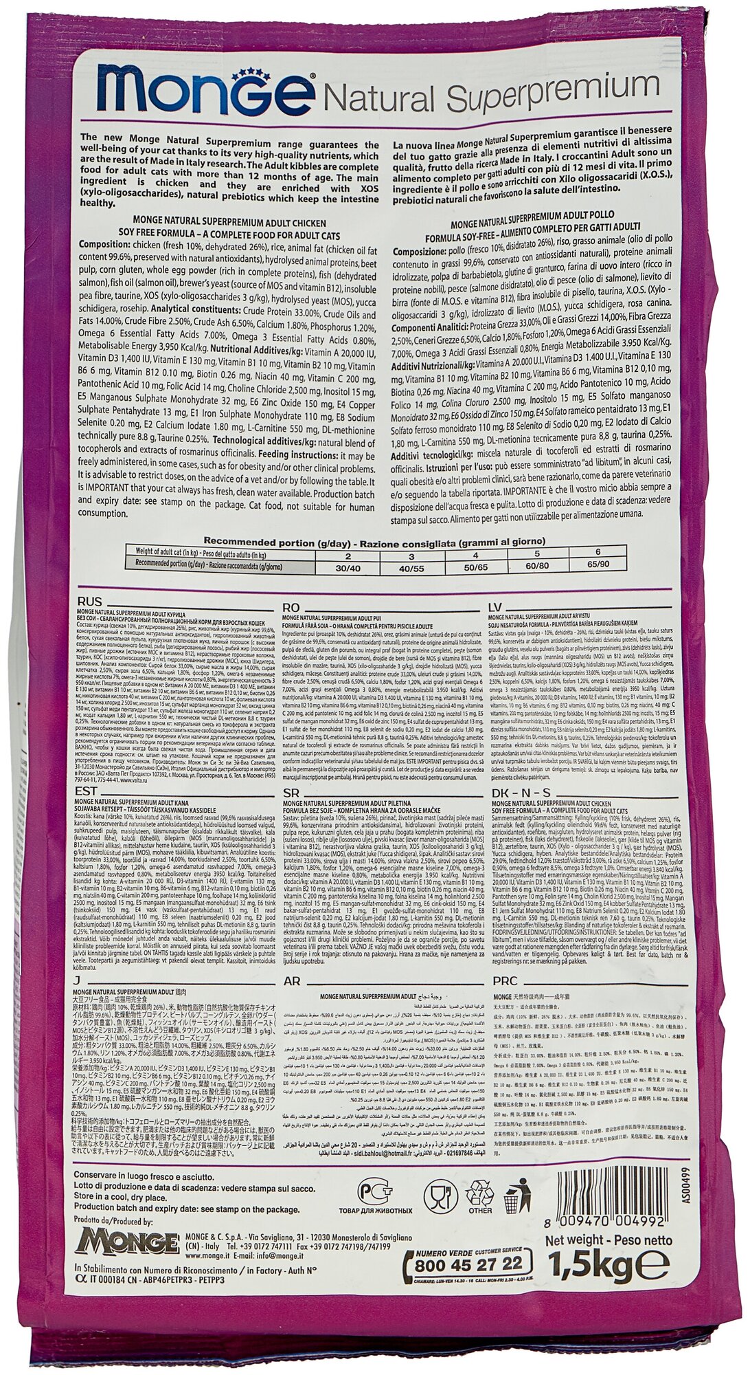 Консервы Monge Cat Natural производят в Таиланде, что позволяет использовать для их изготовления только самые свежие и высококачественные ингредиенты!