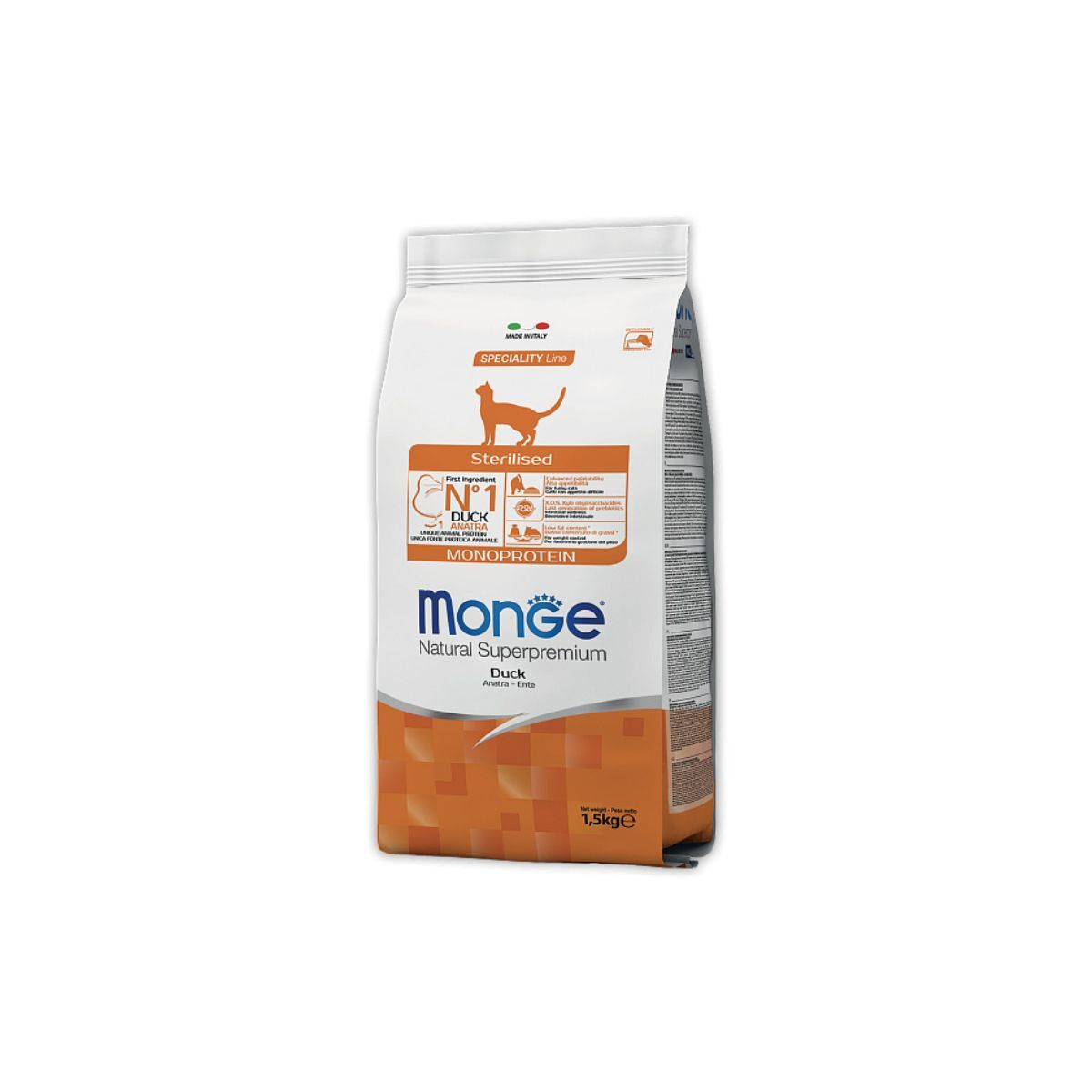 91782 Monge Cat Sterilised Duck корм для стерилизованных кошек с уткой 1,5 кг 1/6