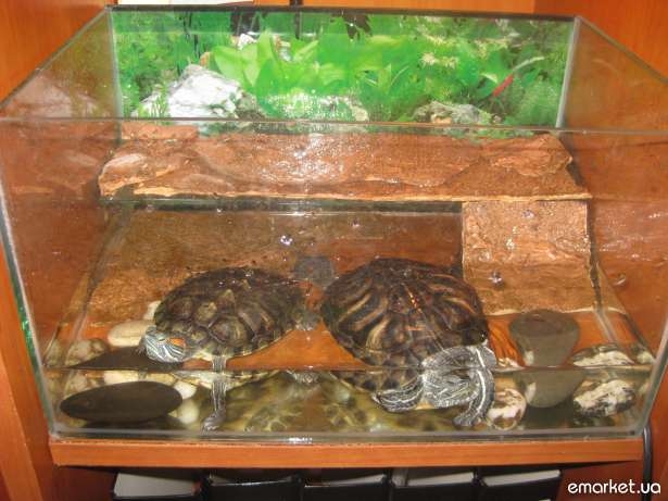 Оптимальный расчет пространства: ширина аквариума не менее трех длин панциря, а длина – не менее 6-ти, на одну черепаху. Не рекомендуется держать в одном аквариуме самок и самцов, а также особей разного возраста и вида. Такие соседи будут испытывать постоянный стресс и конфликтовать между собой.