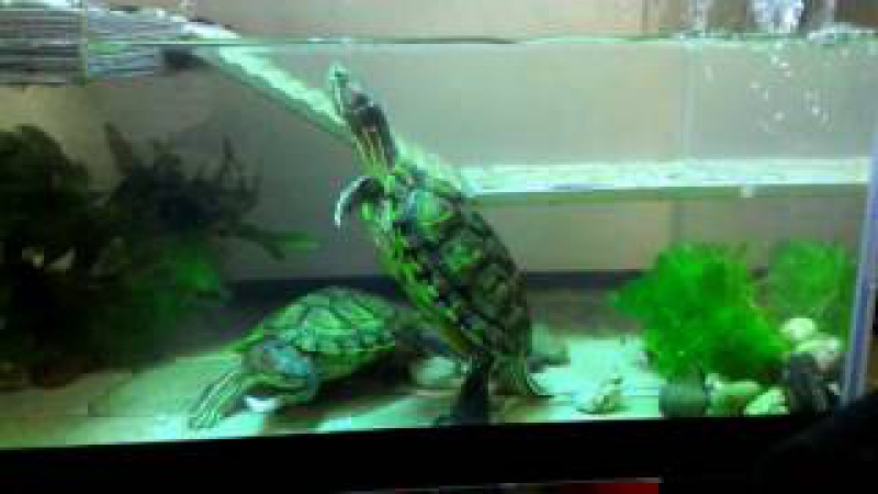 4. Глубина воды в аквариуме должна быть такой, чтобы черепаха встав на задние лапки могла высунуть из воды голову. Ни в коем случае не мельче. Глубже – можно, но тогда дно аквариума нужно будет частично выложить крупными камнями, чтобы черепашка могла на них постоять.