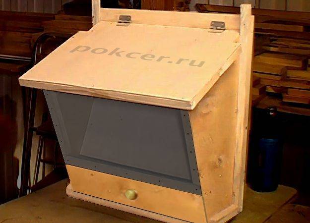 Несложную кормушку своими руками сможет смастерить практически каждый, кто хоть раз пользовался молотком. Основа делается из дерева. Для обивки подойдёт металлический профиль.