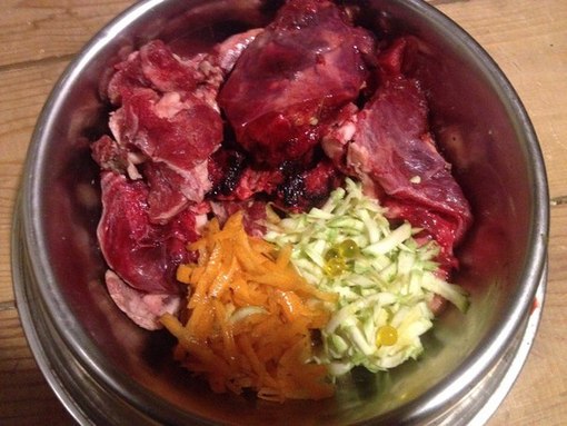 - В процентном соотношении мяса, субпродуктов и овощей нет волшебной пропорции. Я рекомендую 2/3 мяса и субпродуктов и 1/3 овощей. Другие предполагают, что 90% мяса и субпродуктов лучше, а овощи — всего 10%.Относитесь к собакам как к индивидуумам и учитывайте их симпатии и антипатии.