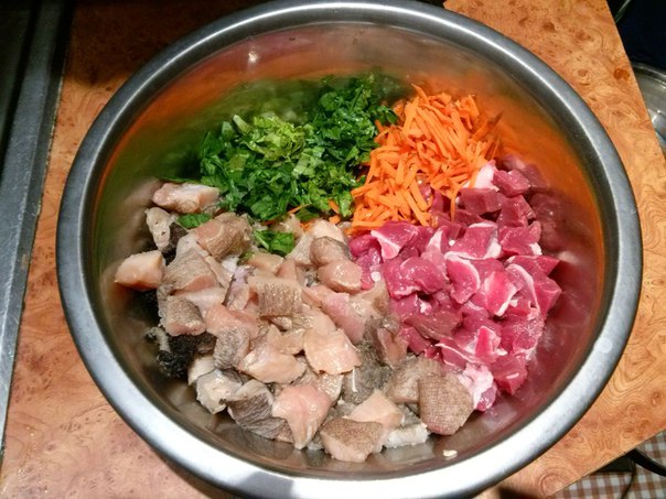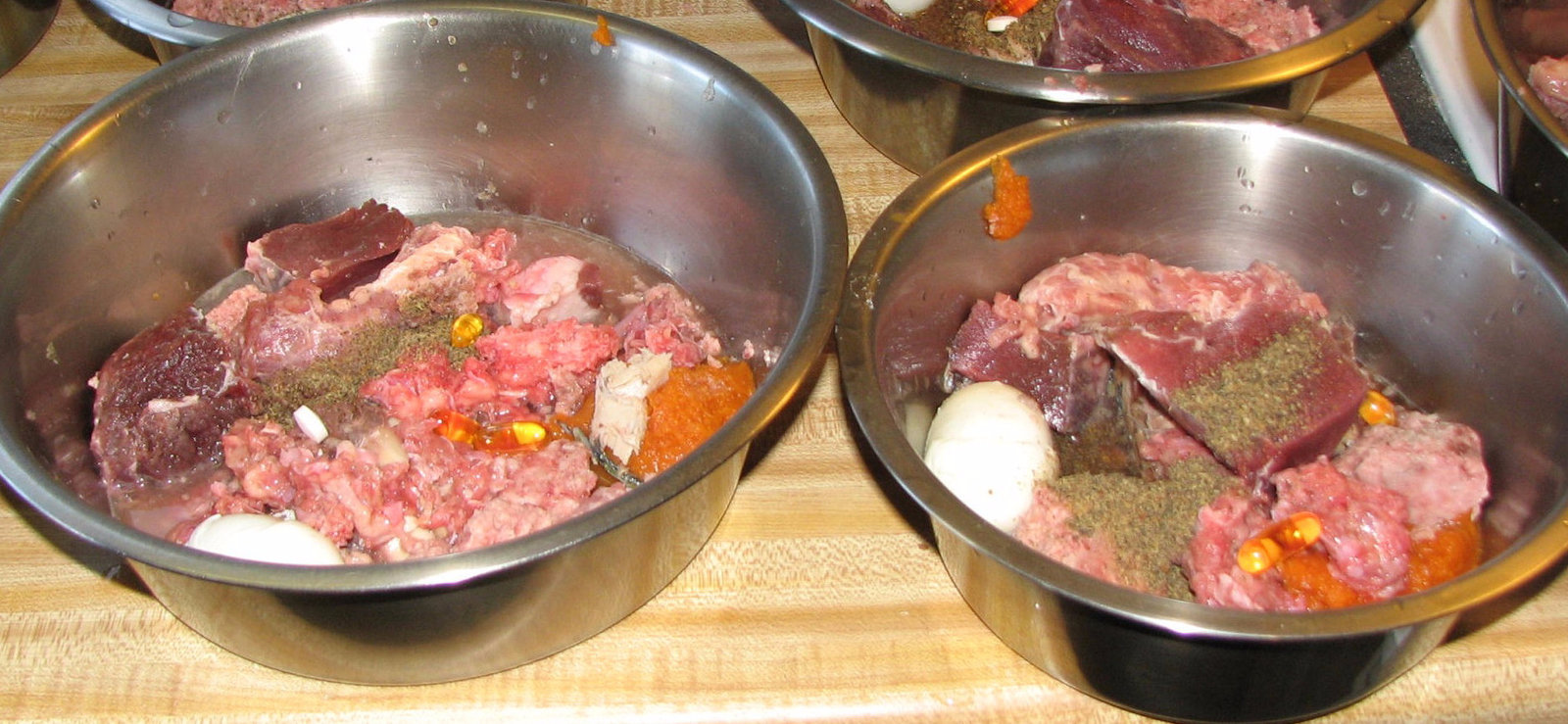 Еще одной необходимой частью питания являются различные субпродукты. Здесь возможно использовать практически любые части тел животных и птиц, используемых и человеком. Единственное исключение — органы свиньи, которые так же слишком тяжелы для нежного собачьего желудка.