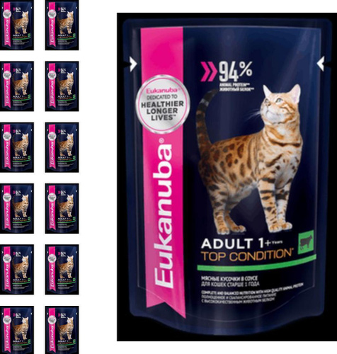 У нас много кошек, все спасены, и большинство из них раньше были дикими кошками. Одна из них, 7-летняя самка, полностью черная кошка, будет есть только одну марку сухого корма для кошек, Eukanuba. Ее шерсть сияет здоровьем, у нее много энергии и индивидуальности. Она крупная кошка, весит около 15 фунтов и не имеет лишнего веса ни на унцию. Я пробовала другие сухие корма, но она ест только этот бренд. Этот корм поддерживает здоровье всех наших кошек без большого количества плохих побочных эффектов, с которыми мы столкнулись при употреблении некоторых других так называемых кормов премиум-класса. Я был так рад узнать, что могу заказать Eukanuba онлайн после того, как местные магазины перестали его продавать.