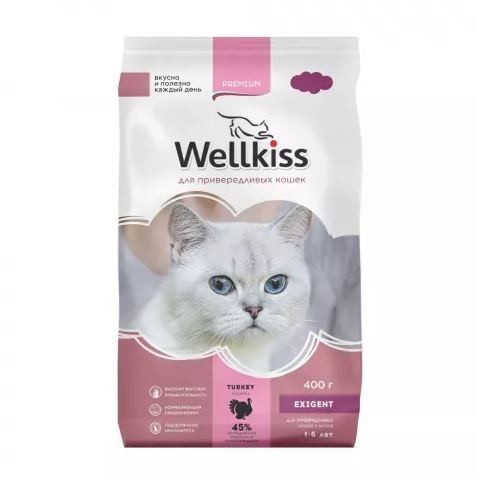 Wellkiss Adult Exigent Корм сухой для привередливых кошек с индейкой, 400 г 2 упаковки Тип корма: