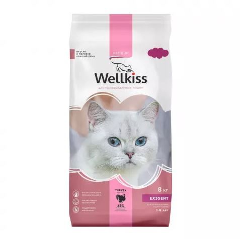 Wellkiss Adult Exigent Корм сухой для привередливых кошек с индейкой, 8 кг Тип корма: сухой, Вкус: