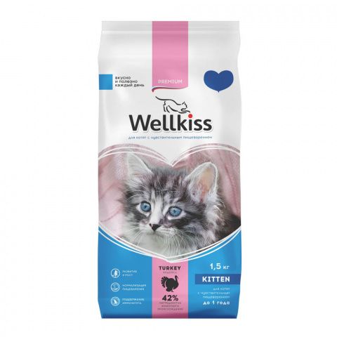 Wellkiss Kitten Delicate Корм сухой для котят Чувствительное пищеварение с индейкой, 1,5 кг Тип