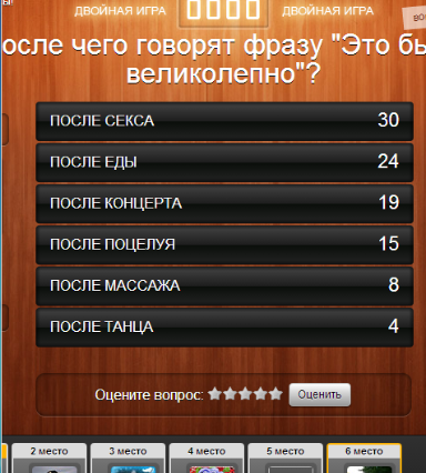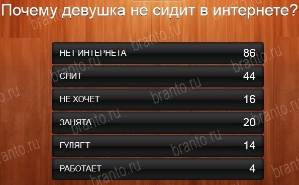 Продолжаем публиковать ответы к игре 100 к 1, которая набирает обороты популярности в социальных сетях. Смысл сто к одному прост: игроку предлагается ответить на вопросы к игре 100 к 1 и получить призовые очки. Против вас будут бороться игроки со всего мира!Победить достаточно сложно, ведь вам необходимо не просто ответить, но и угадать популярные 100 к 1 ответы. Хотите играть в 100 к 1, победить и стать лучшим в рейтинге?Удача в ваших руках, вам необходимо только зайти на наш сайт и найти все 100 к 1 почему и 100 к 1 где. Играйте в свое удовольствие! Если вы не нашли нужные вам подсказки, загляните в главный пост. Там вы сможете найти ссылки на другие подобные материалы, содержащие сто к одному ответы.100 к 1 ответы на вопрос: Где лучше всего искать жениха?