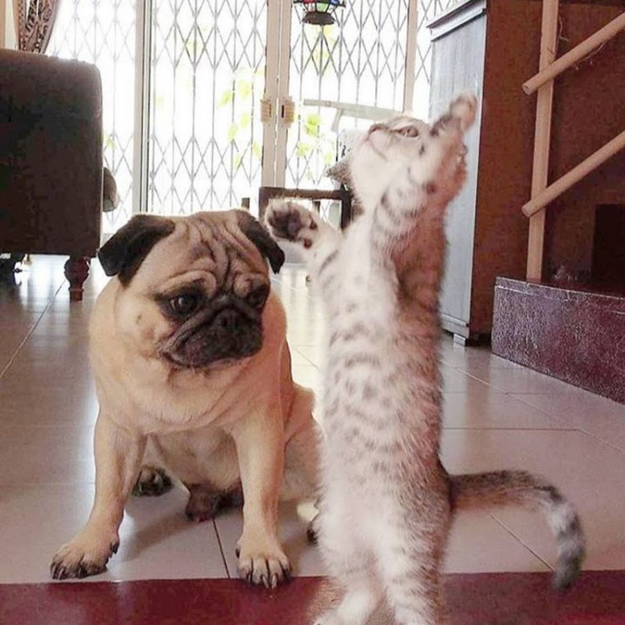 Могут ли мопсы и кошки стать лучшими друзьями?