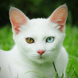 - Глаза овальные с незначительно приподнятыми наружными уголками и характерным блеском. Радужка «белоснежной жемчужины» может быть окрашена в зеленый, голубой или желтый оттенок. Также в породе допускается гетерохромия.