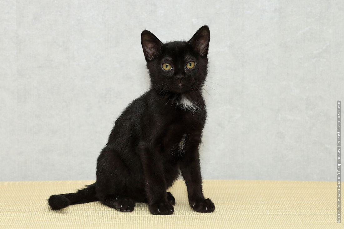 Ценятся в том числе и черные кошки этой породы. В этом случае глаза у питомца должны быть непременно янтарного цвета. Окрас подушечек лап и мочки носа должен быть также полностью черным. Шерсть у этих котов очень мягкая и объемная; несмотря на небольшую длину, кажется довольно пушистой за счет густоты.