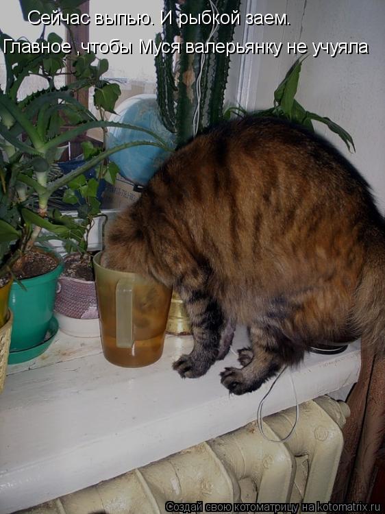 Как-то недавно мне не спалось, а утром рано вставать. И мне пришла в голову «гениальная мысль» — выпить седативное средство — валерьянку. Выпив настойки, я пошла в кровать, но уснуть мне не довелось. Мой кот учуял запах из соседней комнаты. Он прибежал на кухню и начал греметь пустой кружкой, скинул ее со стола, начал катать по полу, громко мяукать. Кружку я у него, конечно, забрала, и выгнала кота из кухни. Но он на этом не успокоился, как только я ушла в комнату, он вернулся, запрыгнул на стол и стал открывать дверцу шкафа, где стояла настойка. И кот ее открыл, чего раньше ему никогда и в голову не приходило, скинул пузырек на пол и стал выковыривать его из коробки. Мне пришлось опять вставать и прятать настойку. А мой Кексик долго ходил по квартире в возбужденном состоянии, мяукал, и не давал мне спать.