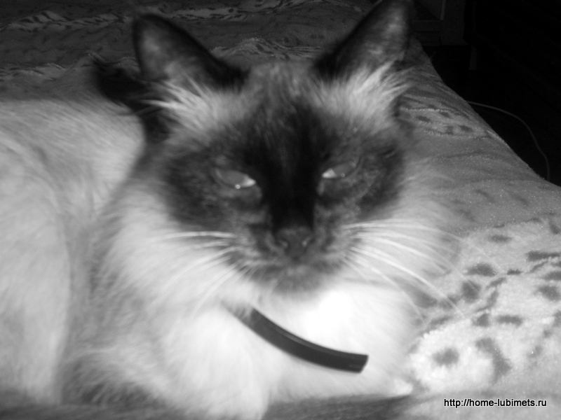 - Близнецовая кошка любит лежать в голове у хозяина и тем самым отлично избавляет его от головной боли