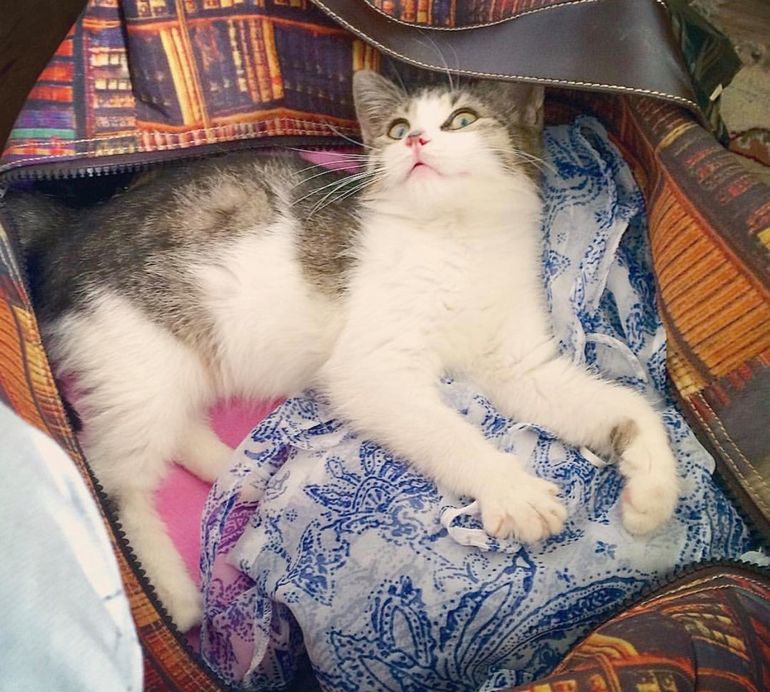 Думайте творчески, ищите места, которые, как вы думаете, никогда не поместятся кошки!