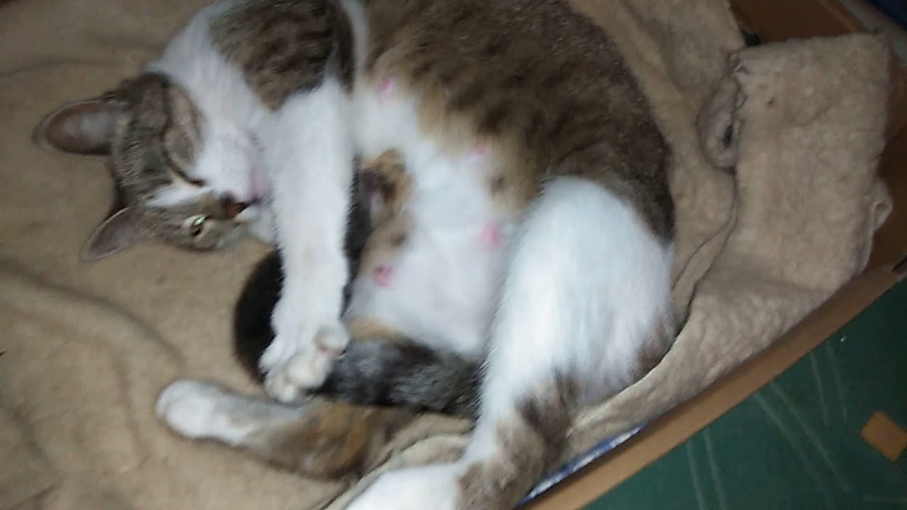 Теперь мы в затруднительном положении: будем мы котят или нет? Еще не поздно провести стерилизацию, даже на довольно позднем сроке беременности, и наблюдается впечатляющая перенаселенность кошек. Как бы ни было заманчиво расширить семью одним пометом котят, пожалуйста, не думайте о них как о своих внуках в кошачьей форме.В приютах и группах усыновления много приемлемых кошачьих внуков, поэтому мы рекомендуем вам стерилизовать.