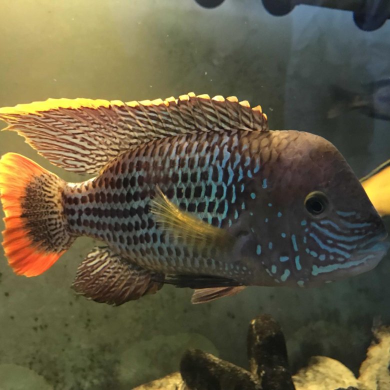 Эта рыба, известная под научным названием Andinoacara Pulcher Hybrid, представляет собой прекрасное зрелище благодаря своему ярко-синему цвету. Электрическая голубая акара — это зрелище, поэтому она широко распространена среди аквариумистов.