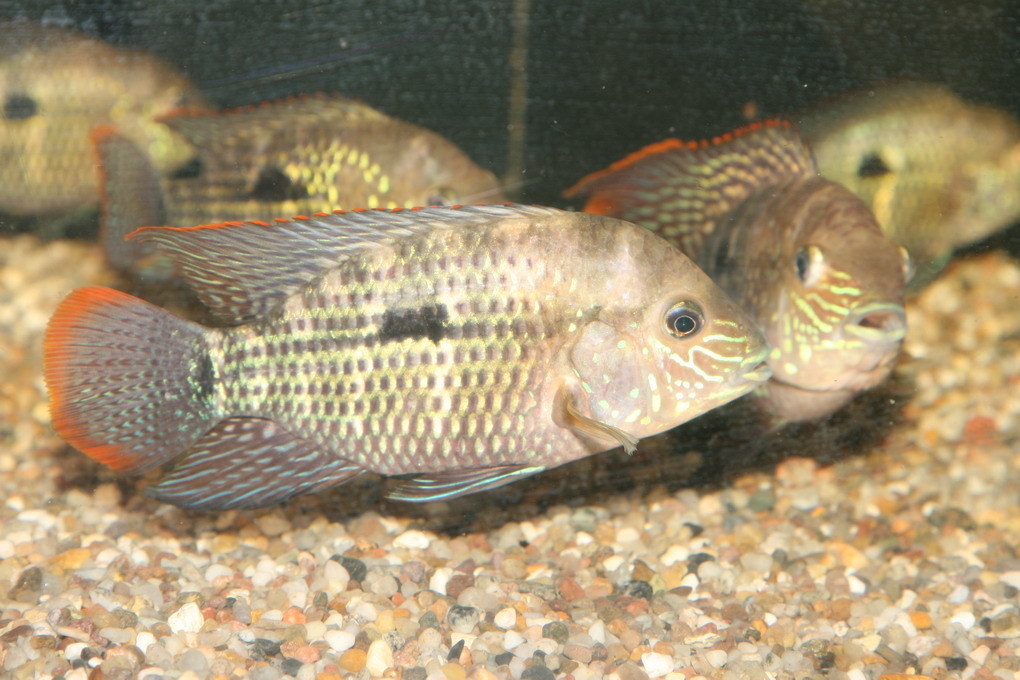 Разведение. Половозрелость в 1 год, нерестятся как и все Цихлиды. Период размножения отличается агрессивным поведением рыб. Дополнительные условия создавать необязательно. Пары создаются легко. Кладка икры на камень, корягу и даже просто на участок дна. Эту территорию они предварительно расчищают. Самка откладывает около 300-400 икринок, после оплодотворения их самцом носит икру во рту вплоть до появления мальков (от 4 до 10 дней).
