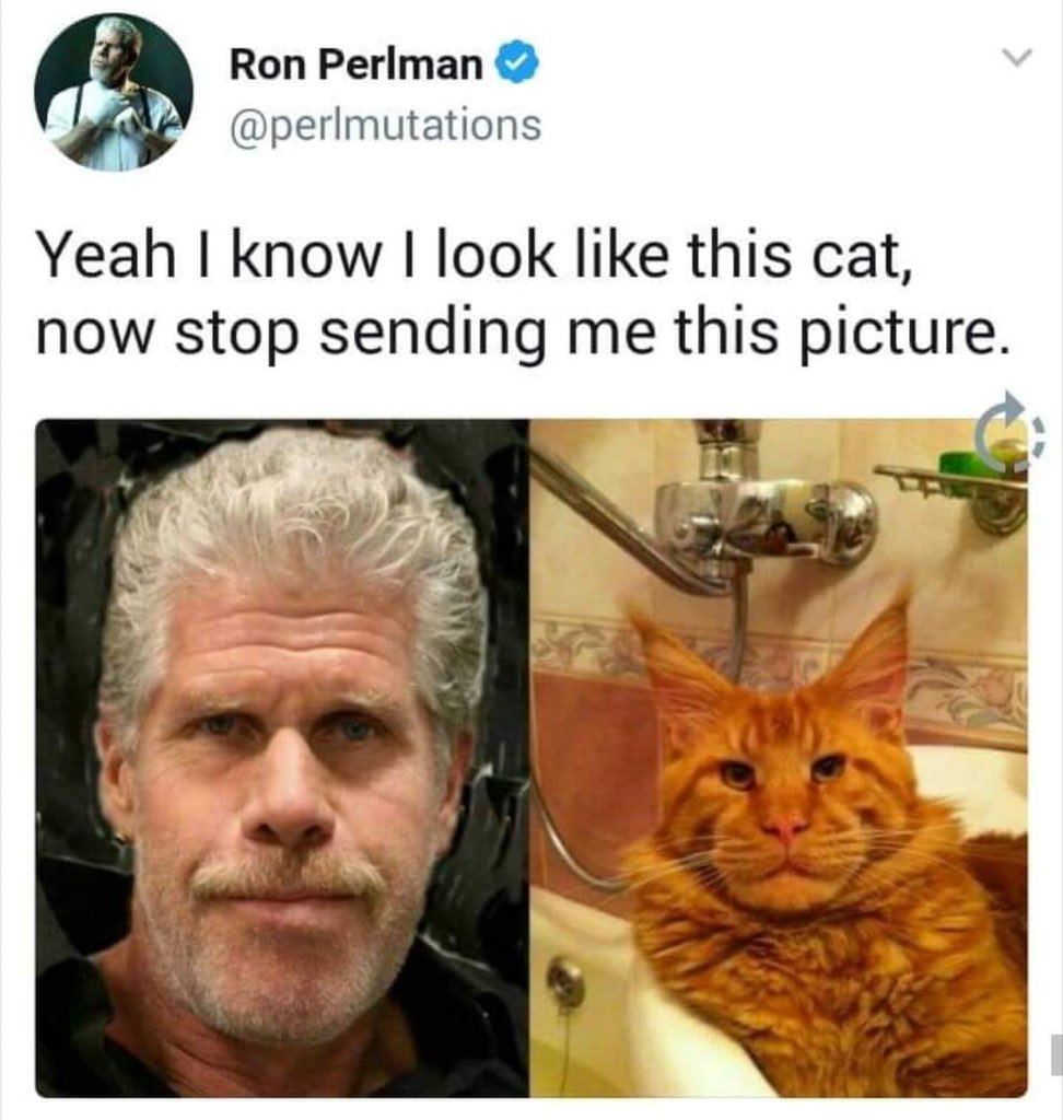 Представляете? Быть настолько самобытным, что люди могут видеть вашу морду на лицах своих питомцев? Вот лишь несколько фотографий, которые вы найдете по хэштегу #RonPerlmanCat.