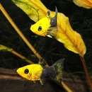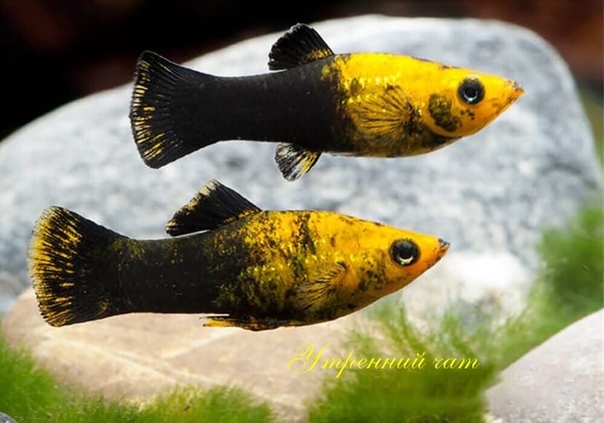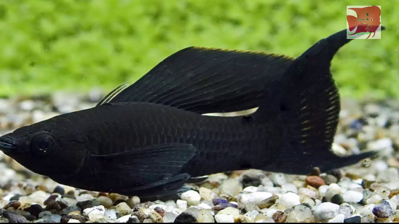 Эту аквариумную рыбку с уверенностью можно назвать черной королевой домашнего аквариума. Это самые известные аквариумные рыбки черного цвета, самые популярные и распространенные. Кроме того, стоят они недорого и их достаточно легко содержать, а потомство этих рыб появляется на свет с завидной регулярностью и полностью сформированным — молли относятся к живородящим рыбкам. В природе моллинезии не встречаются в сплошном черном цвете, этот окрас был получен благодаря инбридингу.