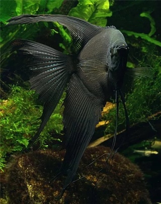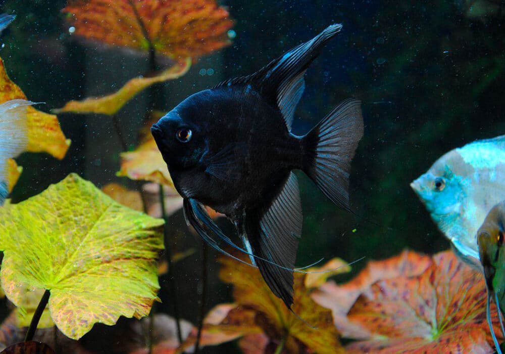 В достаточно большом аквариуме (от ста литров и более) можно содержать парочку черных солярий. Эти рыбы отличаются интересной формой плавников в виде полумесяца. Они любят густую растительность, однако насыщенный черный цвет не дает им возможности полностью затеряться. Скалярии вполне миролюбивы, их можно сочетать с пецелиевыми.