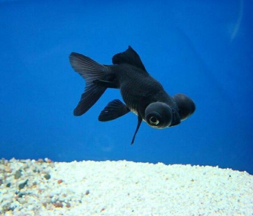 Это один из видов золотых рыбок, также довольно известный и популярный. Это вид телескоп, но черного цвета, с менее выпуклыми конусообразными глазами и довольно небольшого размера, по сравнению с другими видами золотых (около 10 см). Этот вид относится к золотым рыбкам «инвалидам» — из-за чрезмерно выпуклых глаз рыбки плохо видят, а сами глаза очень восприимчивы к инфекциям. Мальки темно-бронзового цвета, лишь взрослые рыбы становятся черными. Также с возрастом черный цвет становится бледнее, вплоть до серого.