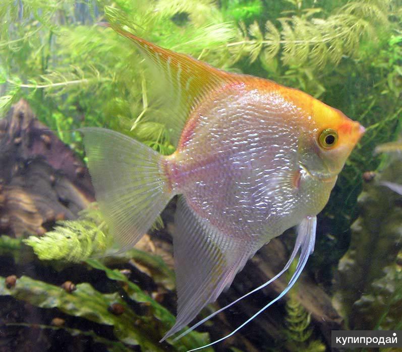 Золотые скалярии имеют наибольшую окраску в верхней части головы и не имеют черной окраски. 12. Рыба-ангел-альбинос