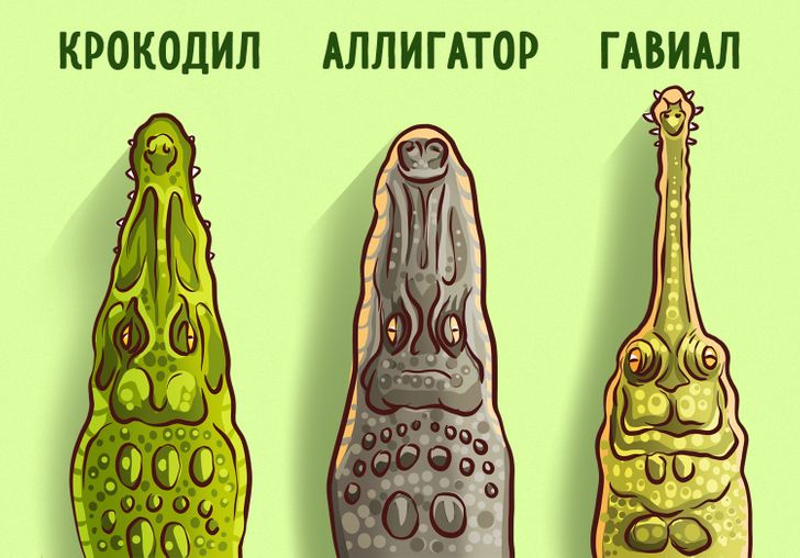 В чем разница между аллигатором, крокодилом, кайманом, гавиалом?