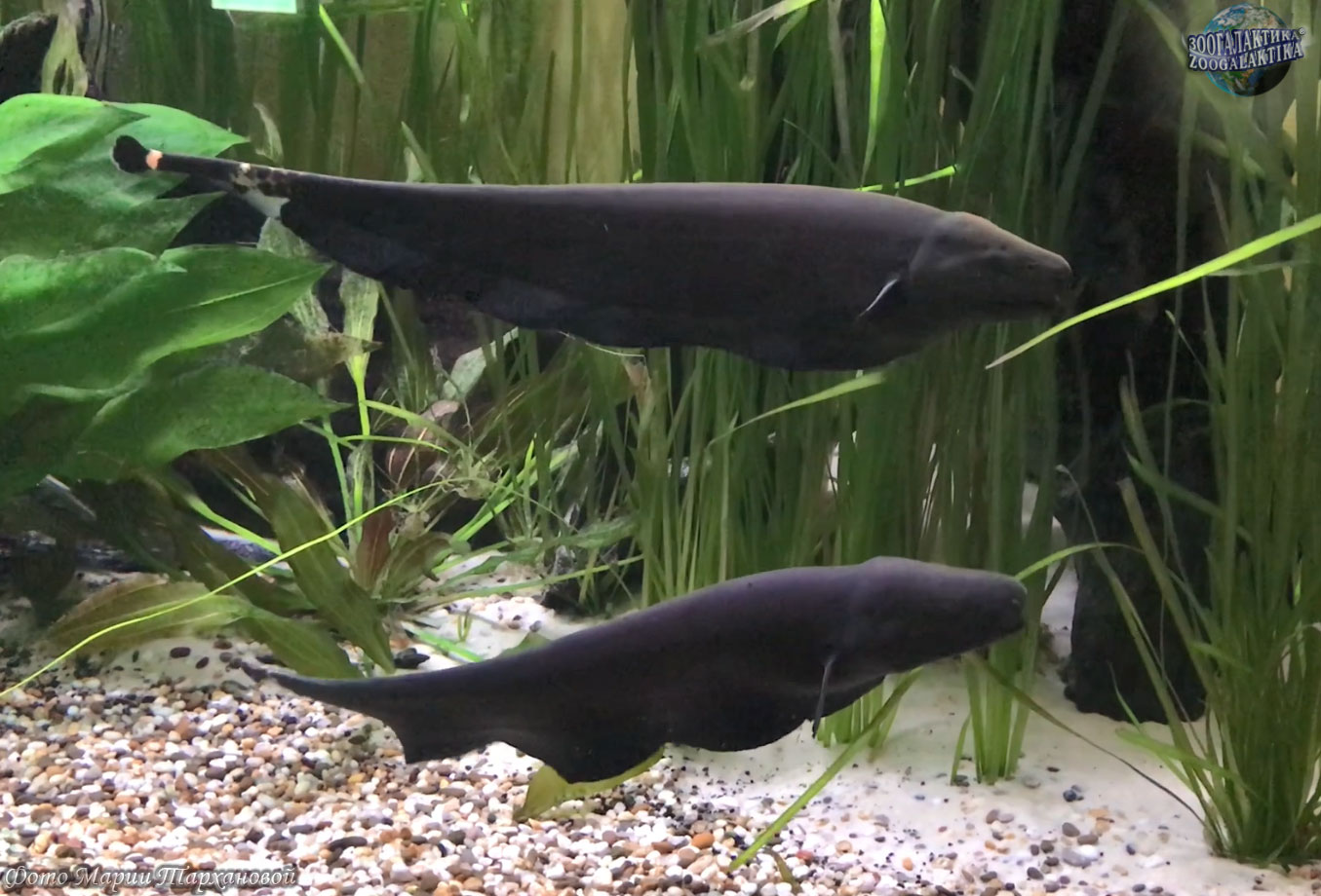 Ее повадки довольно своеобразны и интересны. Несмотря на практически не сгибающийся корпус, за счет нижнего плавника, черный нож может совершать такие движения: