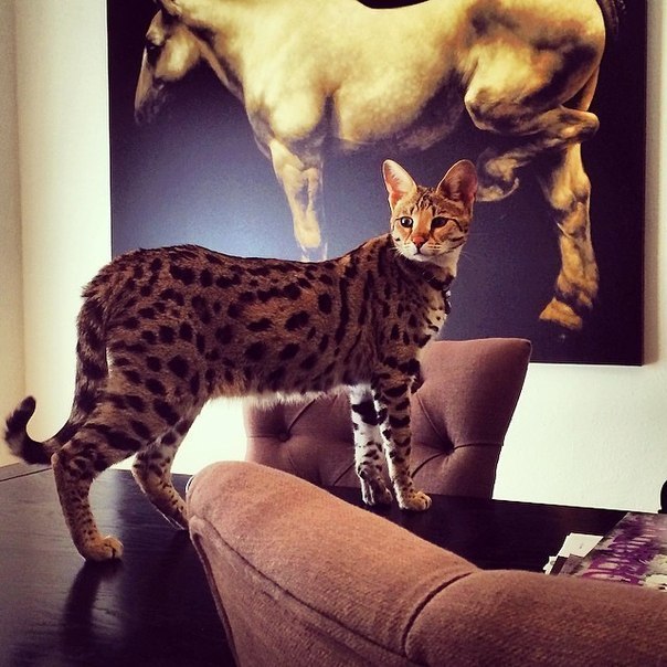 Мини-гепард с великолепным пятнистым окрасом и природным обаянием стал достойным конкурентом не только прочим домашним кошкам, но и собакам, так как представители этой породы позволяли владельцам выгуливать себя на поводке.