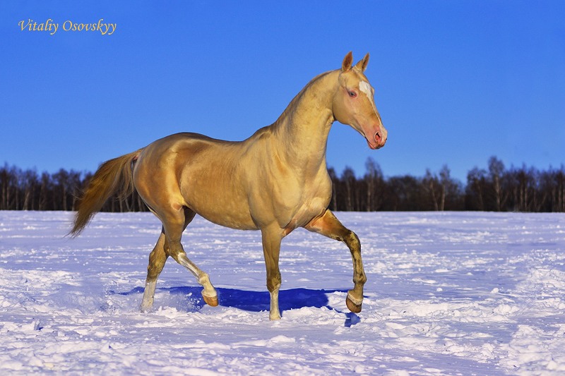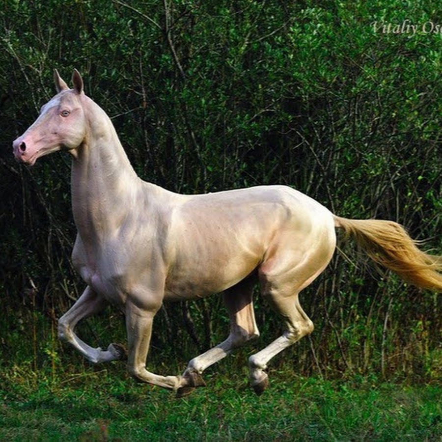 Поэтому у этих скакунов сквозь короткую кремовую шерсть просвечивает розовая кожа, глаза ярко-голубого или зеленого цвета.