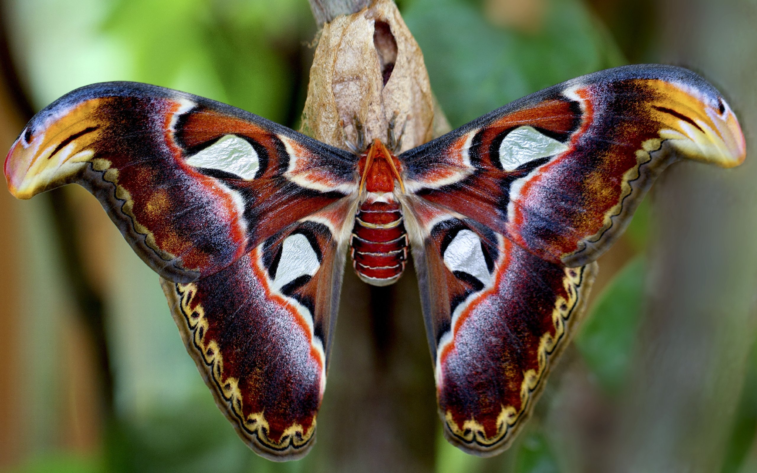 Атлас – поистине гигантская бабочка: размах её крыльев достигает 24 см, коконы – 11 см, а яйца до 3 см в диаметре, что незначительно меньше перепелиных! На крыльях Атласа замысловатый узор из разных оттенков красного и коричневого цвета.